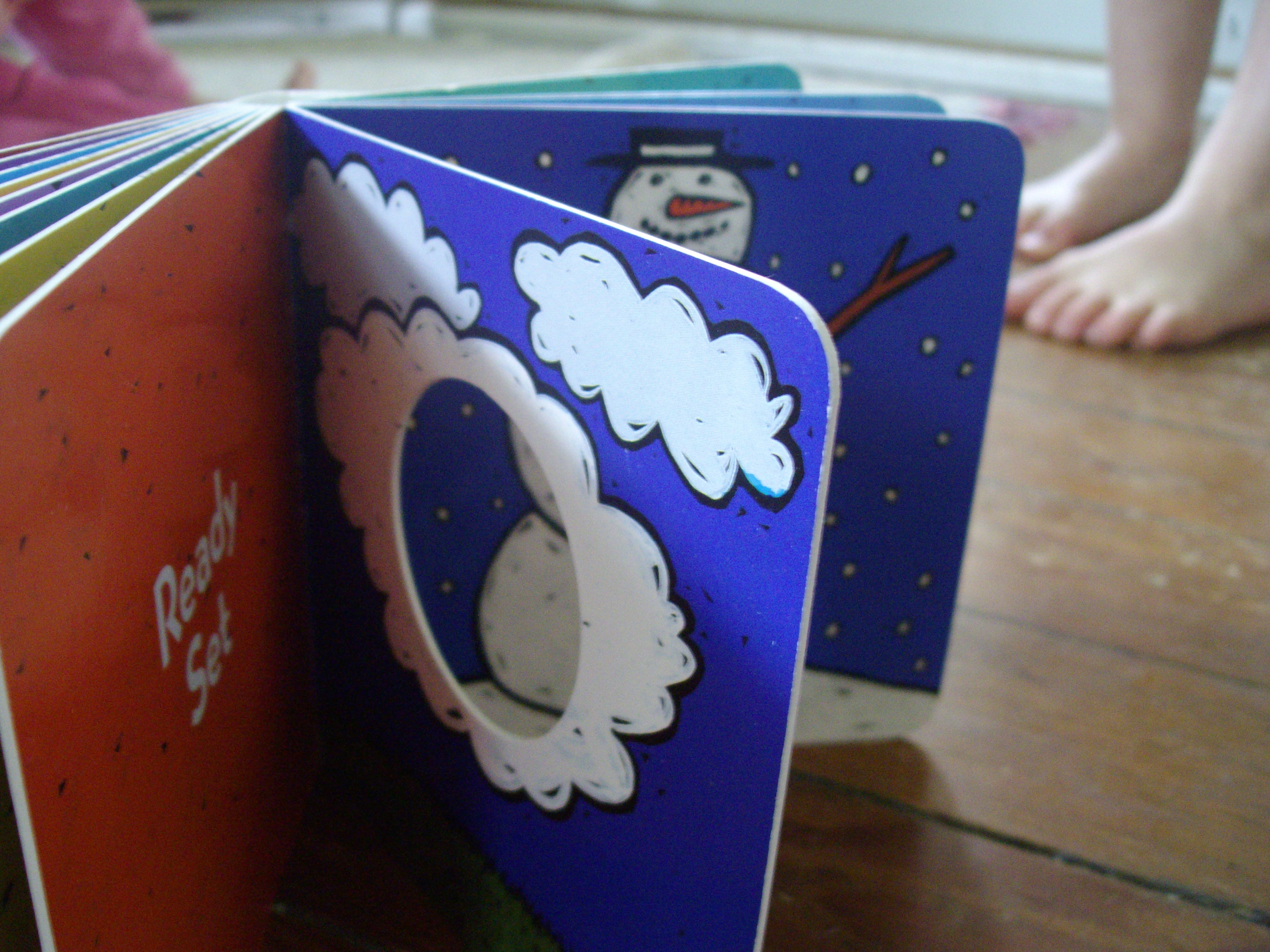 We brought home Ready, Set, Go! after a recommendation that if we liked Peek-A-Who! we’d like this one too. And it’s true,Clara loved it and my favorite part was that Ivy loved “reading” it to her.