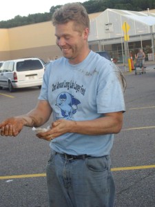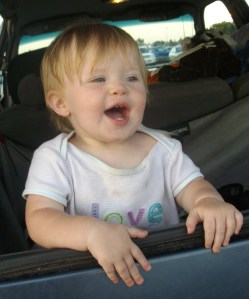 Out came the phone and into Wal-mart went John. A looong time later he reemerged with oil for the leaking thingy-bob and the comment that if there was ever a place that made him want to eat more oatmeal and keeping running this was it.  John called it the “confluence of ugly and fat people” and while that sounded a bit harsh I went inside later and decided he might be onto something. Then as I was wandering around the place looking for dairy-free-eat-able-in-the-back-of-a-truck snacks for Clara, while cursing at the Gerber company that they put dairy in everything and don’t bother with that handy allergen warning at the bottom of the labels (seriously what is with that???) I realized I was wearing my new Lager Fest shirt. I like my new shirt, I think it’s funny, and it’s my favorite color.  But, as I looked down at my shirt with the cigarette smoking, beer drinking, fish and then over to the baby in my arms I decided that perhaps people in glass houses shouldn’t throw rocks and I would withhold all further judgment on other Wal-mart shoppers.