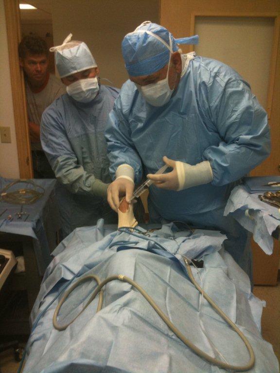 Over the weekend my Uncle Jim (you may remember him from the Pewaukee Triathlon) and his super staff fixed Storm’s knee.  While Uncle Jim makes a pretty good biker for an OFG we are fortunate that he is a far better veterinary surgeon than triathlon team member. Nobody in this family is going to talk smart about out-suturing him, we just come visiting with our broken dogs and make sure to say please and thank you! Uncle Jim had a big job with Storm’s knee, from what I heard about it everything in her knee was messed up in some way, a few of the major items: grinding off extra bone growth and replacing her ACL! All reconstructed in her bright pink bandage (chosen by Ivy of course) Storm is back at home and doing well. Right now Storm is confined to her crate and while she may get tired of that in the weeks to come today she’s going with the flow, and making sure to keep that leg elevated!