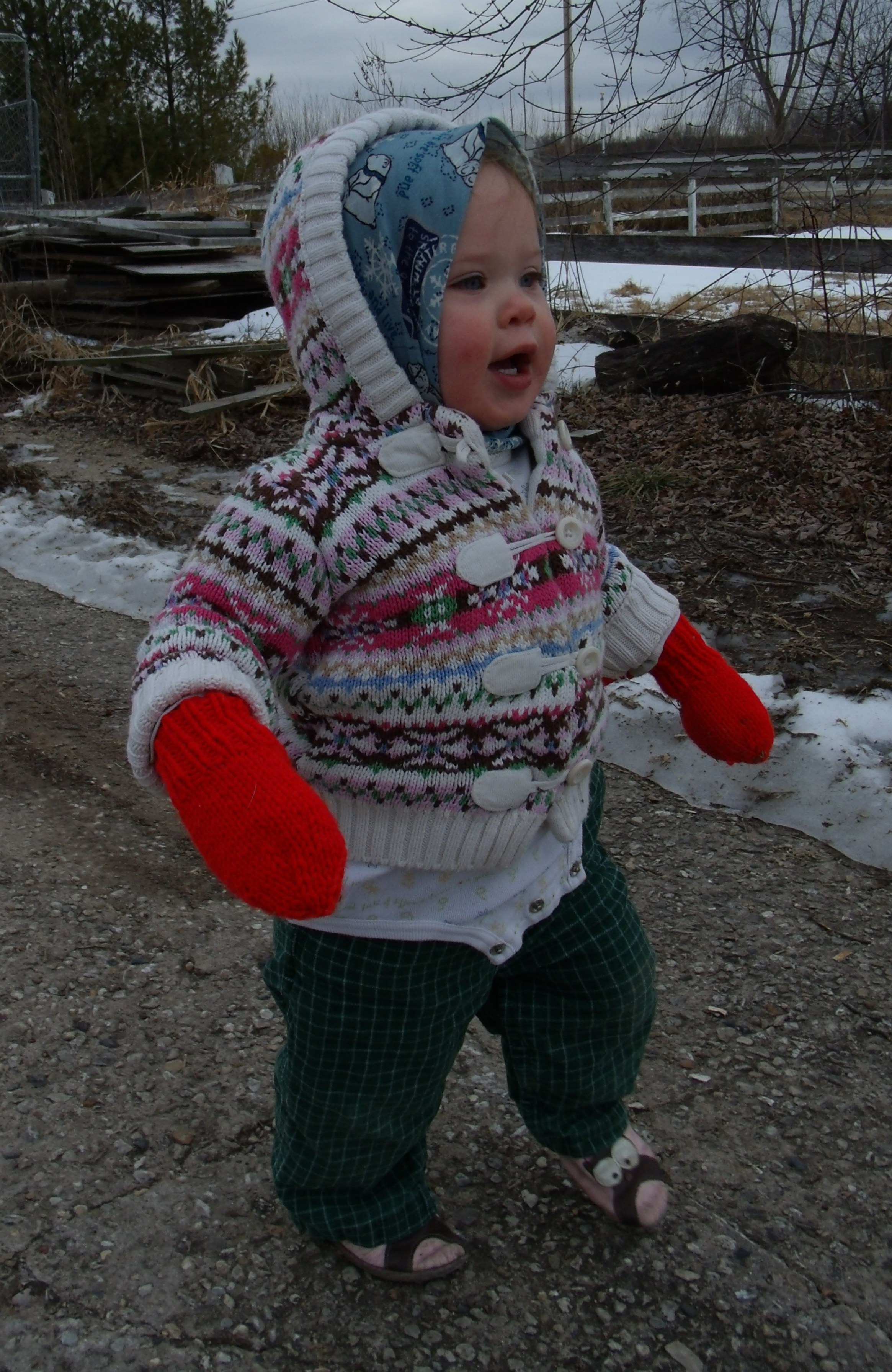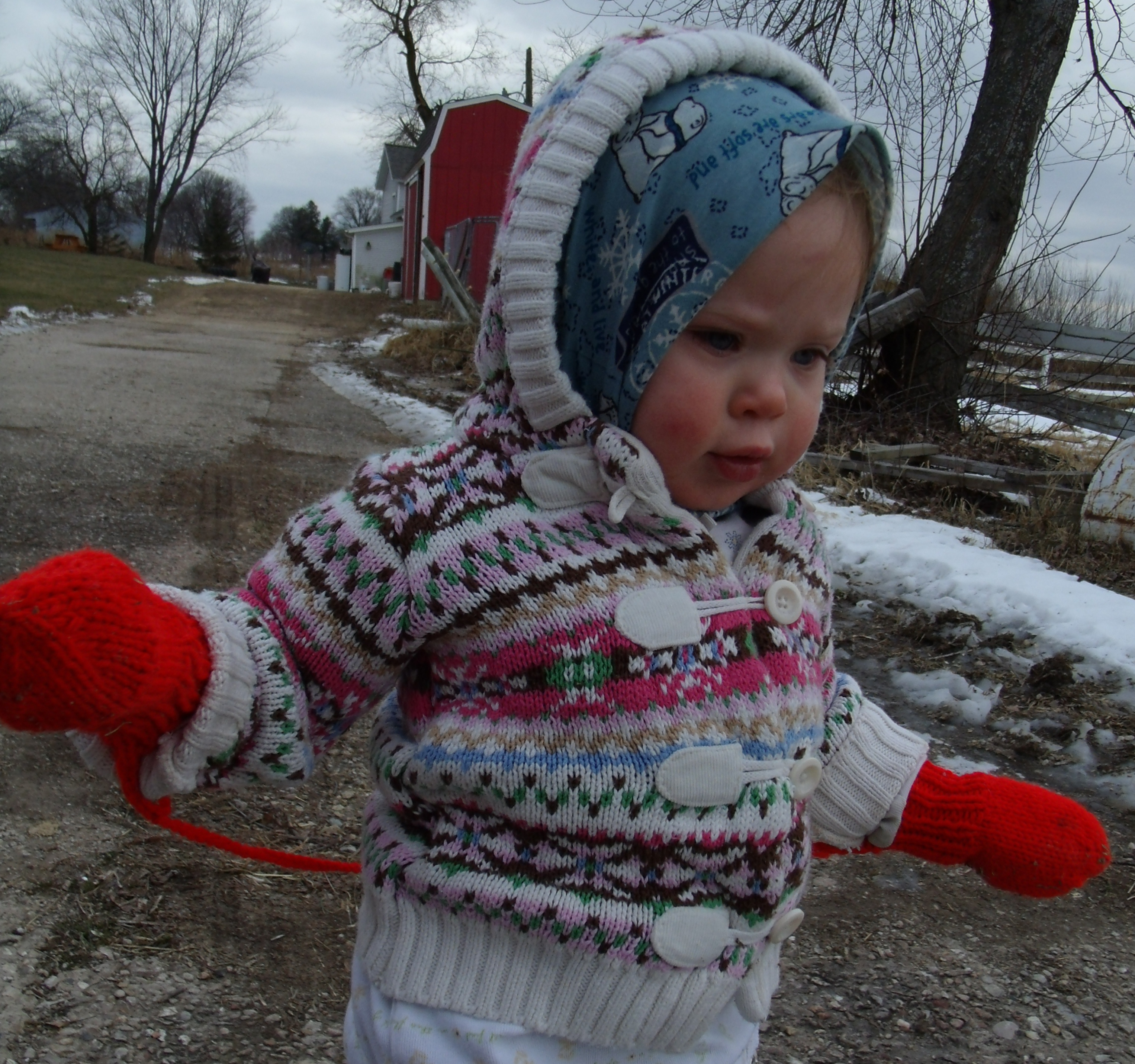 Not that she couldn’t go outside when we had ten inches of the white stuff, it’s just that now she can walk, and when she falls over she can get back up again.