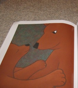 The real kicker was at the end. Baby Bear needs one more thing: “‘What now?’ grumbled Mother bear” … …and he of course needs a kiss.