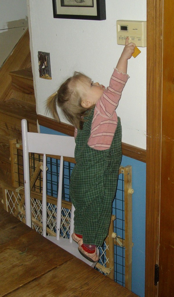If there weren’t so many body issues related to them, I would wish Clara a future as a dancer or gymnast. Or a trapeze artist…look, I can support myself with my pointer finger on a thermostat! And hold on the my cracker!