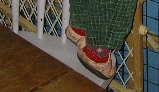 She looks talented here but the next morning she fell off the bed, down part of the stairs, ran into the wall twice and fell down from standing hard enough to split the skin on her temple all within about an hour. I’m thinking trapeze artist shouldn’t be in her future!