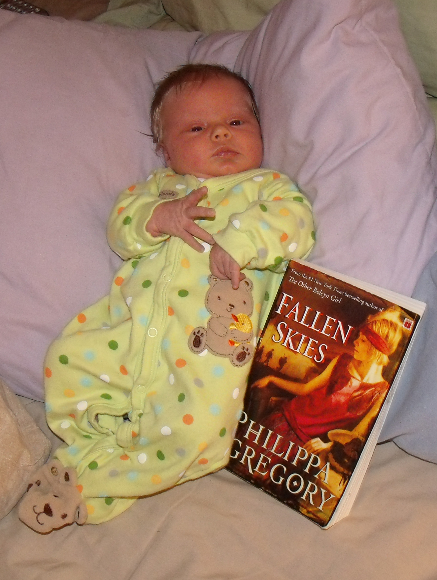 One of the many benefits of having a period of rest with a nursing baby is that there is a lot of time for reading. Some of it may be reading at two in the morning – but that’s never been something that has bothered me. In fact, this is about the only time I can be reading at two in the morning without mentally chastising myself and feeling guilty about being tired the next day. So without further adieu, here is my reading companion and book model showing off the last Phillipa Gregory book I read: