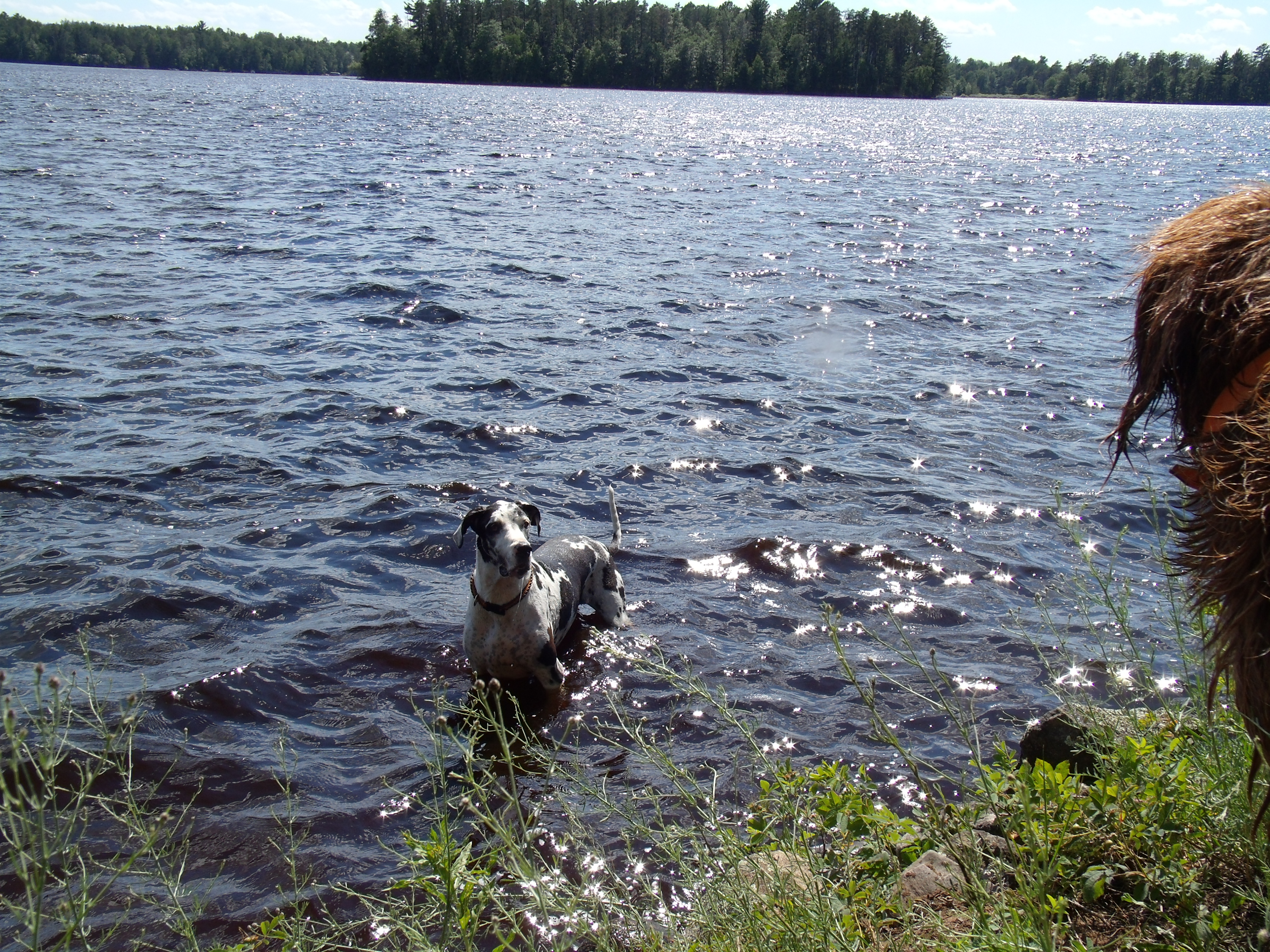 First off you should know that while Piper loved the water she never liked to swim. In fact, for all the time she spent on and around water I only remember her swimming four times. Once was when she dumped us out of a canoe, another was when she slid off the end of a dock, once when she accidentally ran out too deep in the water and one time when she was chasing a pheasant over a water filled ditch (I’m guessing she didn’t know how deep it was). Swimming was not a voluntary activity for Piper. What she did love was running and splashing in the shallow water.  Piper would do one of two things. Either run gigantic crazy circles that were half on land half in water or she would wait just out far enough that she could stand but the other dogs couldn’t and then jump on them when they came by. I loved my dog, I miss my dog, but my dog was undeniably a butt-head at times.