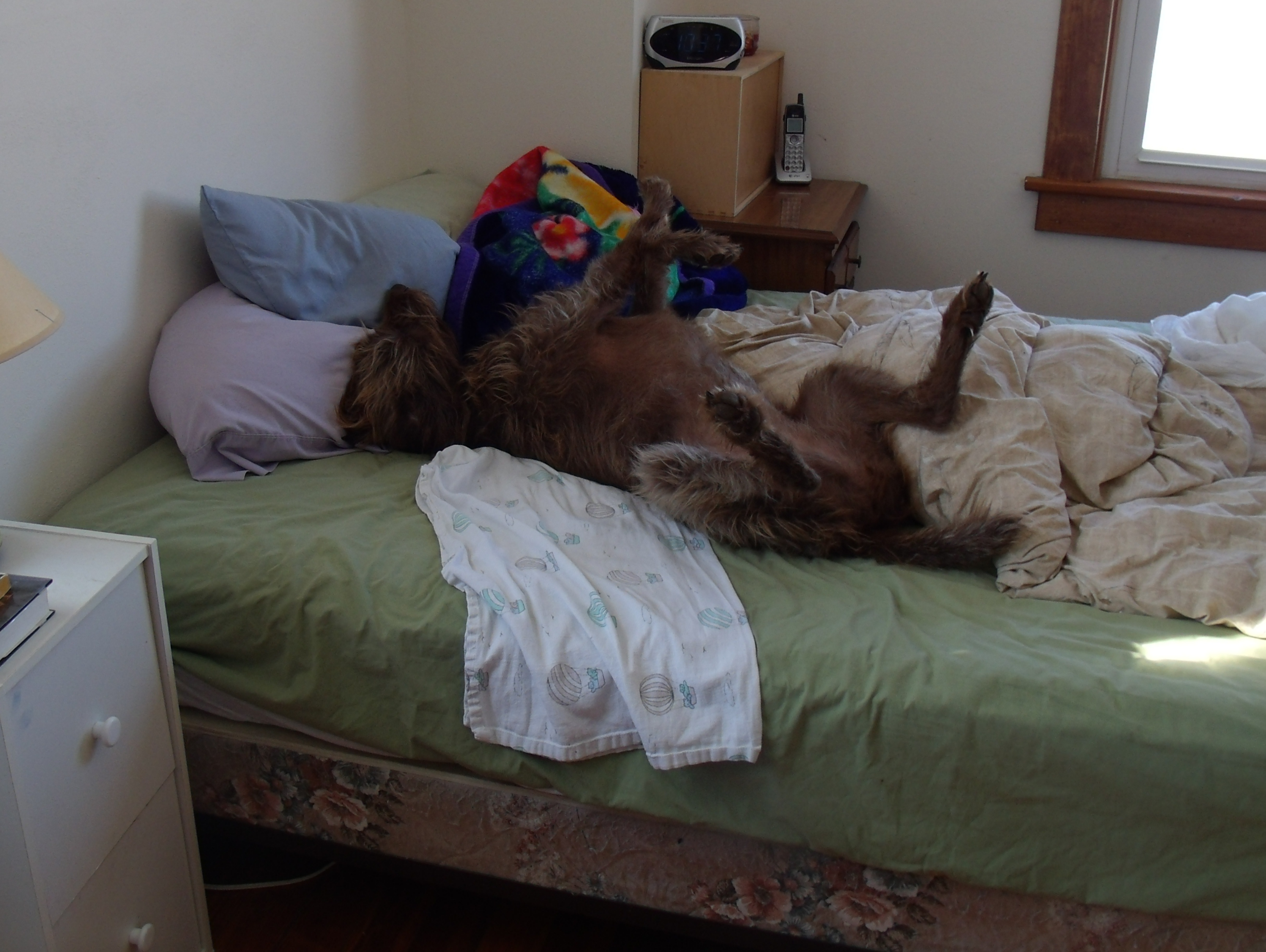 So while John and I missed sleep, changed diapers and broke up fights we didn’t also have to clean up dog barf, walk dogs and attempt to teach Trip manners. The theory was that Trip would stay with Tyler and get to do lots of hunting until John and I figured out how to survive life with three girls. I’m not sure we’ve got the three kid thing down yet but I missed my puppy enough that I convinced John we’d be fine if he came back home. After almost two months of living with this as our only dog…