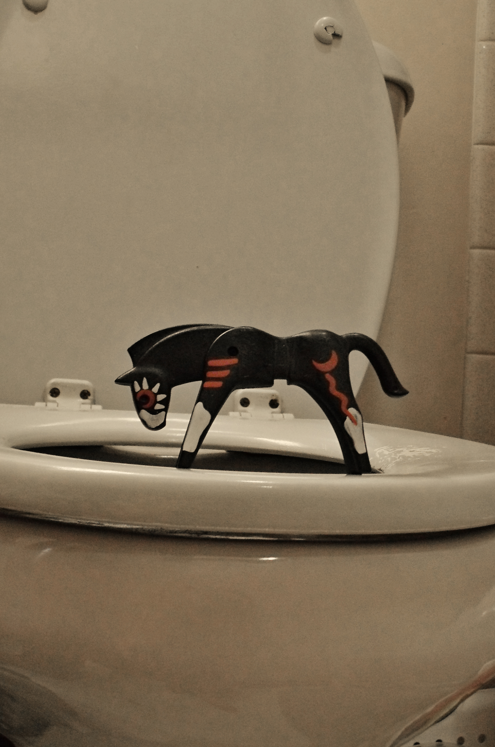John, having been raised in a home where he was the only male, is fantastic about always putting the toilet seat down. This is a habit I have always appreciated and admired in my husband and for years I have not had to worry about what sort of condition I might find the toilet in. But this morning my complacency almost lead to catastrophe. I need to remember that now I am in a home that is raising three girls and I must look before I sit.