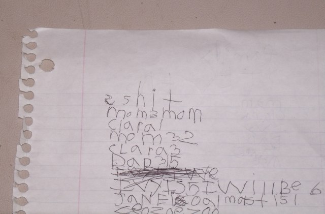 Tonight Ivy found an old notebook and decided to show off some of those writing skills she’s been working on at school, it was a proud moment for us parents: