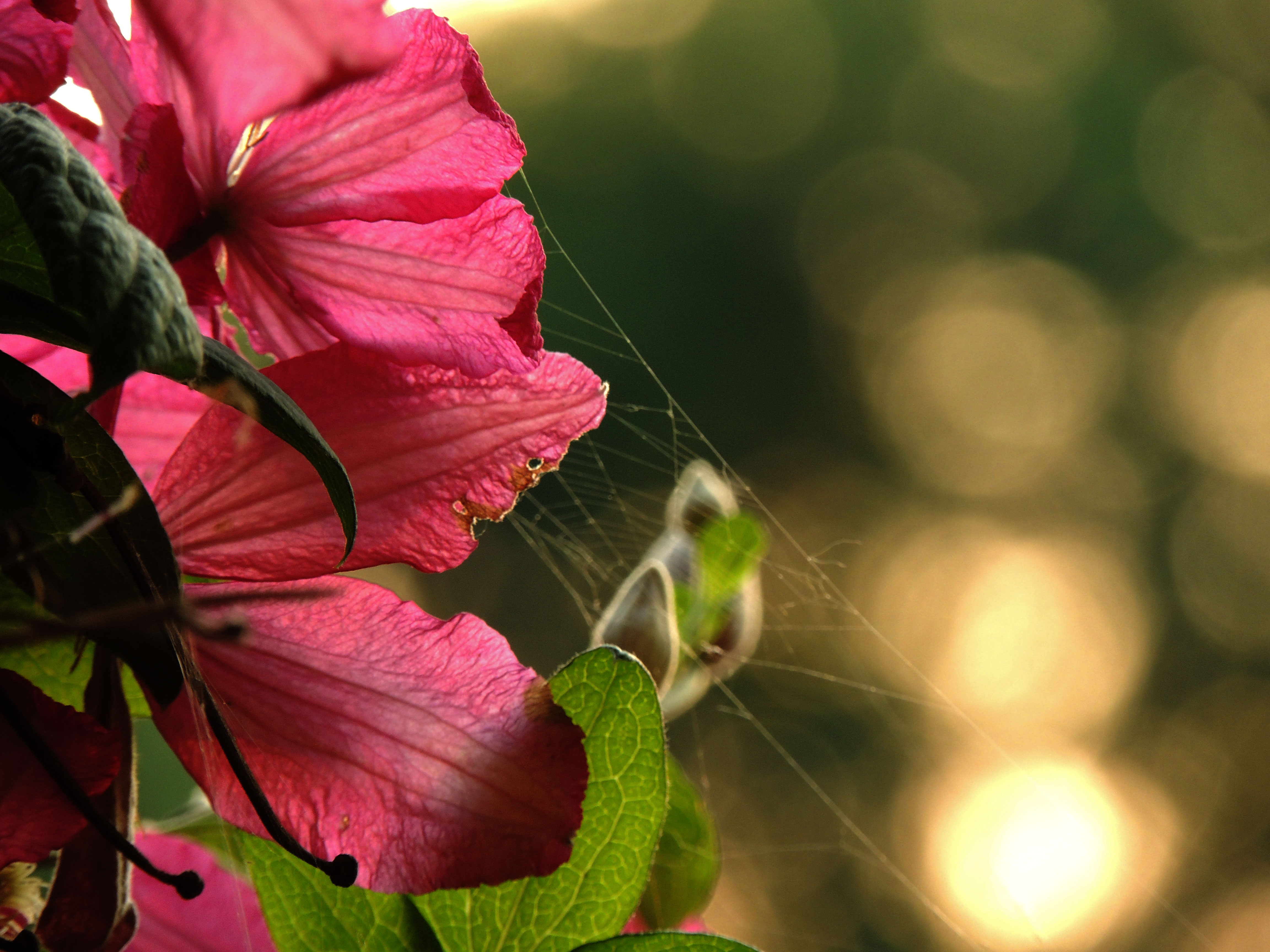 Weekly Photo Challenge: The Golden Hourclematis and spider web