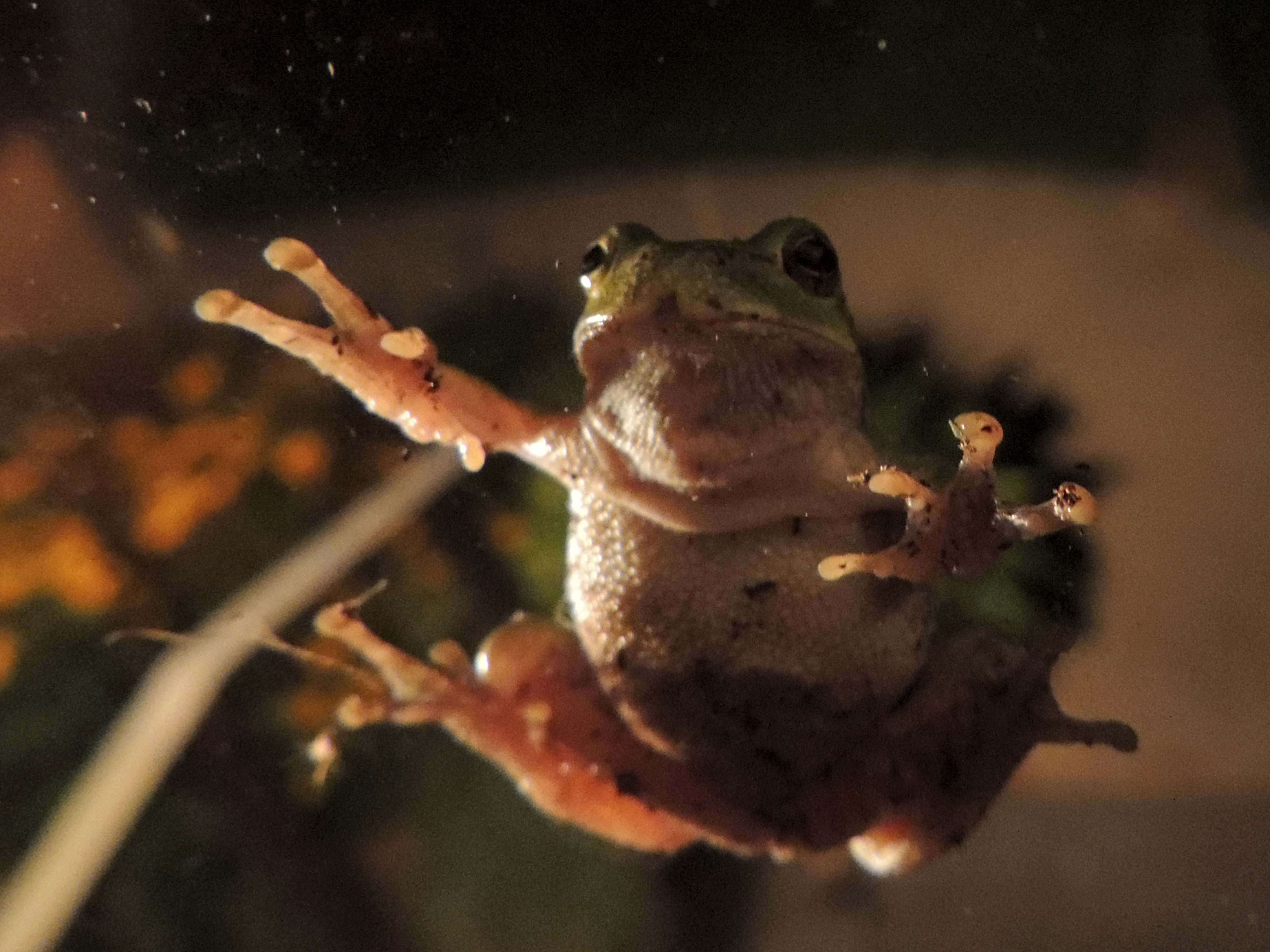 Cool! Are they all tree frogs? They look like grey tree frogs? Be careful – their skin secretions will burn your eyes!