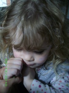 This is Ivy’s shut down mode. It is her passive refusal to do absolutely anything, where she closes her eyes and turns into a limp noodle. Oh sure, she looks all sweet and innocent, but I think that is some sort of latent survival instinct kicking in. Without the innocent look, I’d be down to just one screaming child!