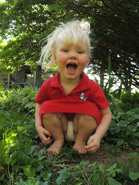 Haha! Exploring vocal chords I see… I love how excited they get. She seems to be having a blast! 🙂