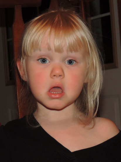Yes, I can hear you laughing from here and you can stop anytime now. Because seriously. Seriously. Does she really think she can get away with all sorts of trouble just by talking fast and looking cute!?! Talk about an attitude guaranteed to make a mothers blood pressure spike!