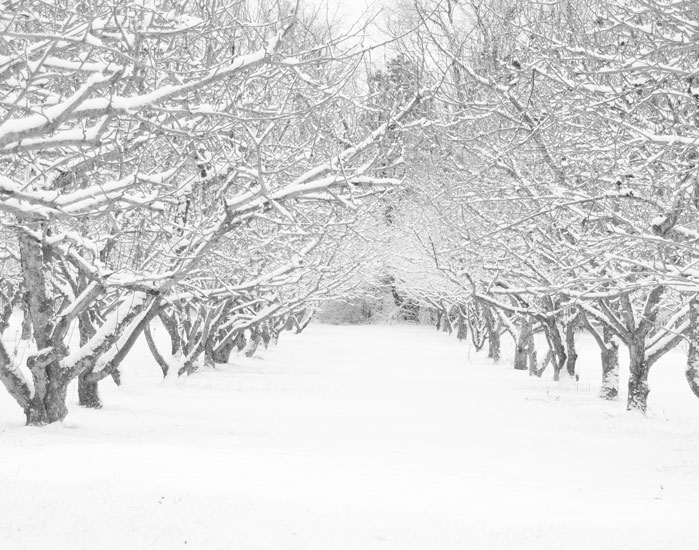 Sadly, no matter how many times I sang that song, we were still a bit short of space cowboys this week. So, I settled for a picture of the orchard under a new coating of snow instead.