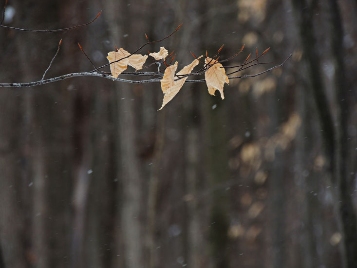 These last few leaves seemed to glow on what was otherwise a grey and snowy winter morning.