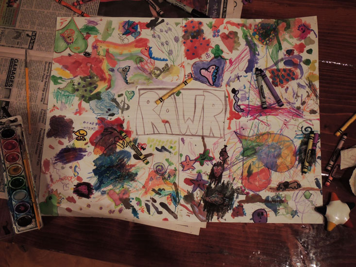 That’s a genuine Rarasaur “Rawr” surrounded by all the love we could wring out of our art supplies. I’ll send a picture of it along with my next letter to her.