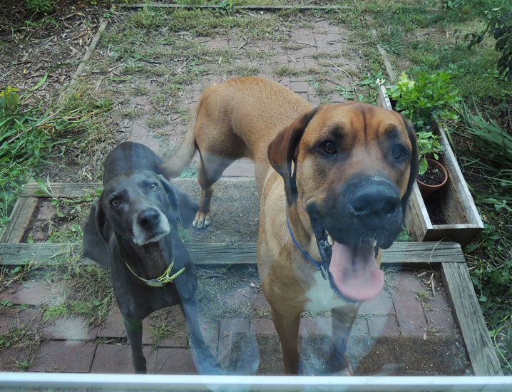 For a not so hypothetical example, let’s say one dog looks through the window on the door and sees the neighbors’ cat calmly sitting on the sidewalk. The one dog does nothing more than what amounts to a giant doggy intake of breath before you are on top of the situation, closing the door and squashing the dog’s enthusiasm. But it’s too late, the house full of dog has already exploded with excitement. (The cat, of course, just sits there watching and listening because cats are a bit jerky like that.)