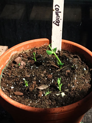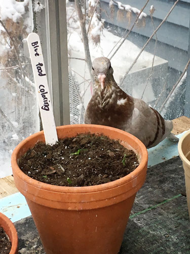 One day, Janurary 23rd to be exact, Ivy came to me in tears. “The pigeons at my peas!” Sure enough. All those healthy looking peas that seemed to love their blue food coloring enhanced water, as well as the control pot of peas were eaten down to nothing. The moldy orange juice dirt was untouched and the pigeons looked not even a tiny bit remorseful.