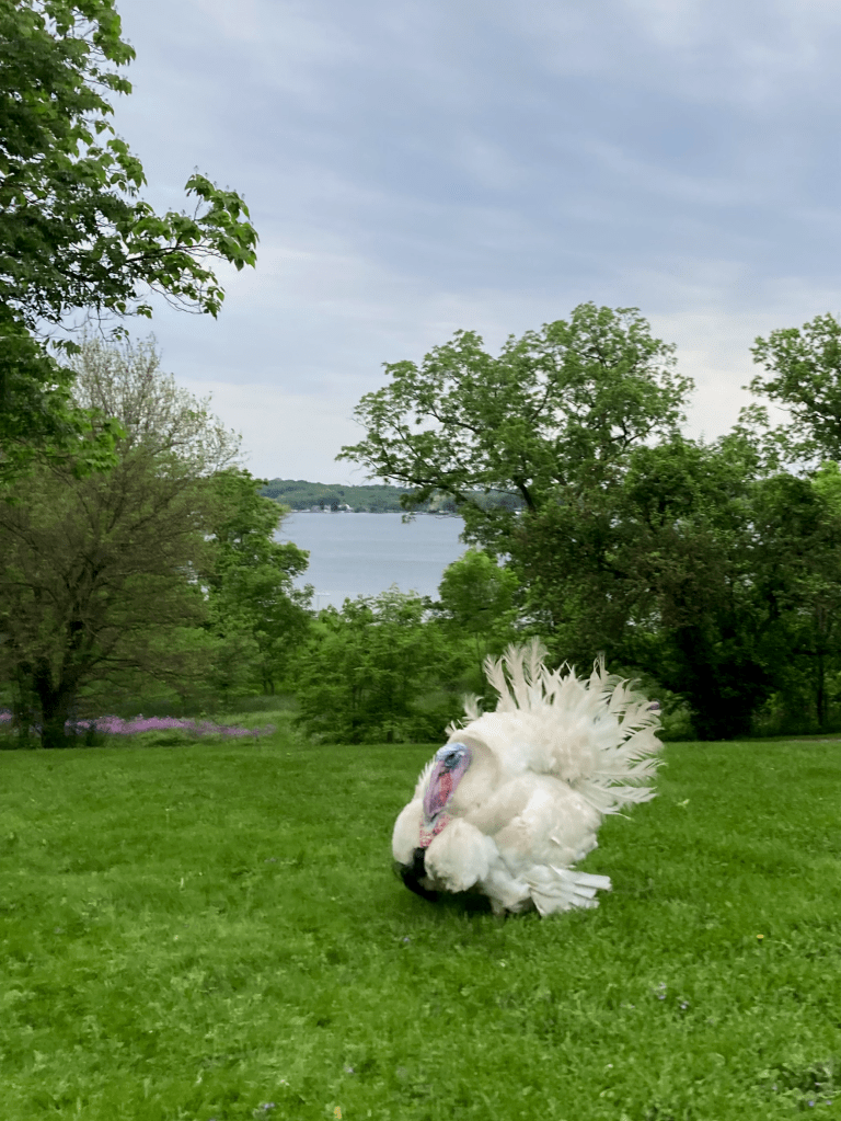 No, I have gone home for the summer with John at my side trailing a whirlwind of kids, dogs, cats, chickens, ducks, pigeons, geese, finches, Louie the dove and that one damn turkey I can’t seem to get rid of.