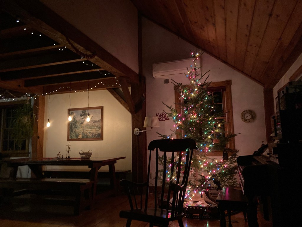 Now I have a stick with a ball of lights globbed onto it lighting the room with its soft glow behind me, a cozy fire in front of me (dead Christmas trees really do make excellent kindling!) and I’m contentedly enjoying the last sparkle of the season from my rocking chair in between.