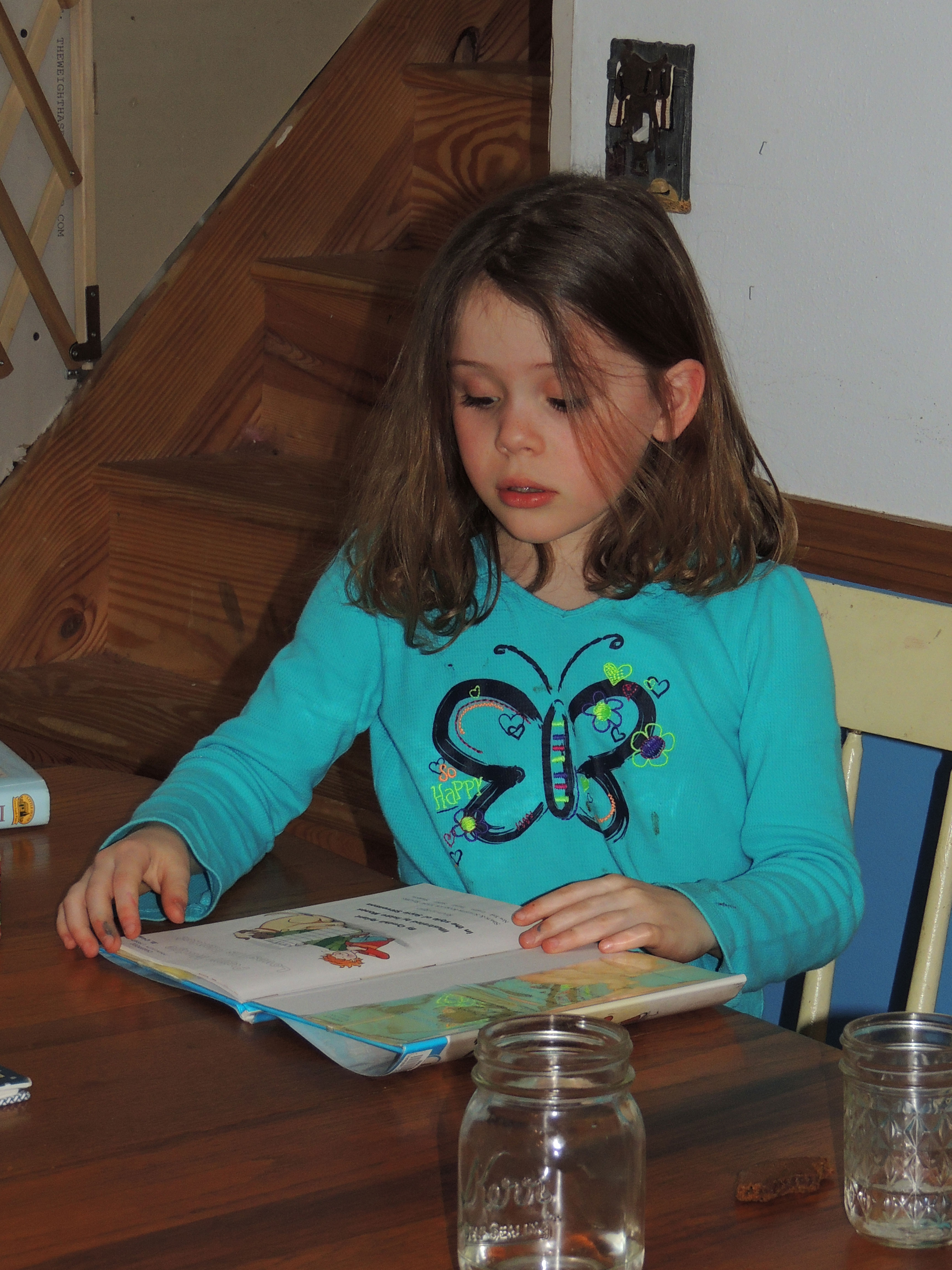 All of course providing that the reading happens in a proper setting. A proper setting according to Ivy is one where nothing is too hot, or cold, or soft, or hard, or there are too many sisters, or dogs, or box elder bugs, or she is too tired, or too awake, or too bored, or too interested in something else… If any of that is the case, all bets are off and she will forget how to read the word “the” and everything else she has learned. At that point it’s better to smile and put away the books until another day before you end up contemplating selling her to the gypsies.