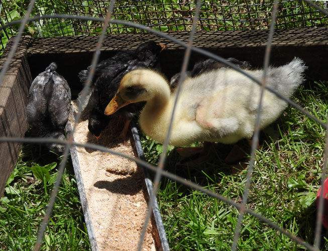 While watching this show was both entertaining and educational, it was also very noisy for us humans and looked exhausting for the chickens. We were all sticking it out waiting for the new boys to get just a bit bigger when one of them pecked at Jane. Not only did he peck her leg but then he stood watching Jane scream with feathers plumped in a threatening manner until I came at a run to give him the boot (literally) and rescue her. Sadly, Roosty’s fierce protective instincts don’t extend to anything without feathers. While I love having a rooster around, we have a one strike rule when it comes to aggression toward humans. Roosty has never so much as looked at us sideways, but this young rooster had crossed the line.