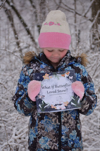One April day the girl looked outside as the heavens opened wide and giant snowflakes filled the air. Large and wet they stuck to everything and turned the newly greened land white again.