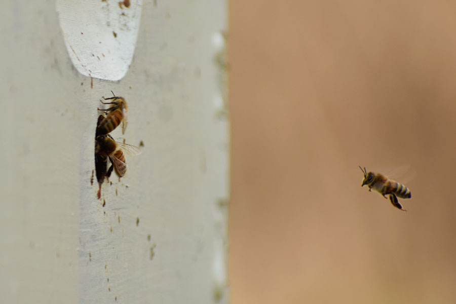Sure, it’s a little more nuanced than that. I usually take a few frames out so they have room to fall into the hive easier, the queen comes in her own special cage inside the package of bees and she needs to be placed in the hive within her little package first. And the art of slamming a two or three pound box of bees on the ground repeatedly and then shaking them out is… well, actually, that’s not much of an art. It’s just banging and shaking and it makes me feel like a mad woman every year. “Hey look, a few thousand bees in a box, lets bang them on the ground and dump them out!”