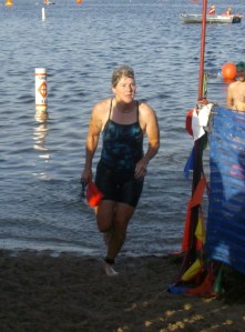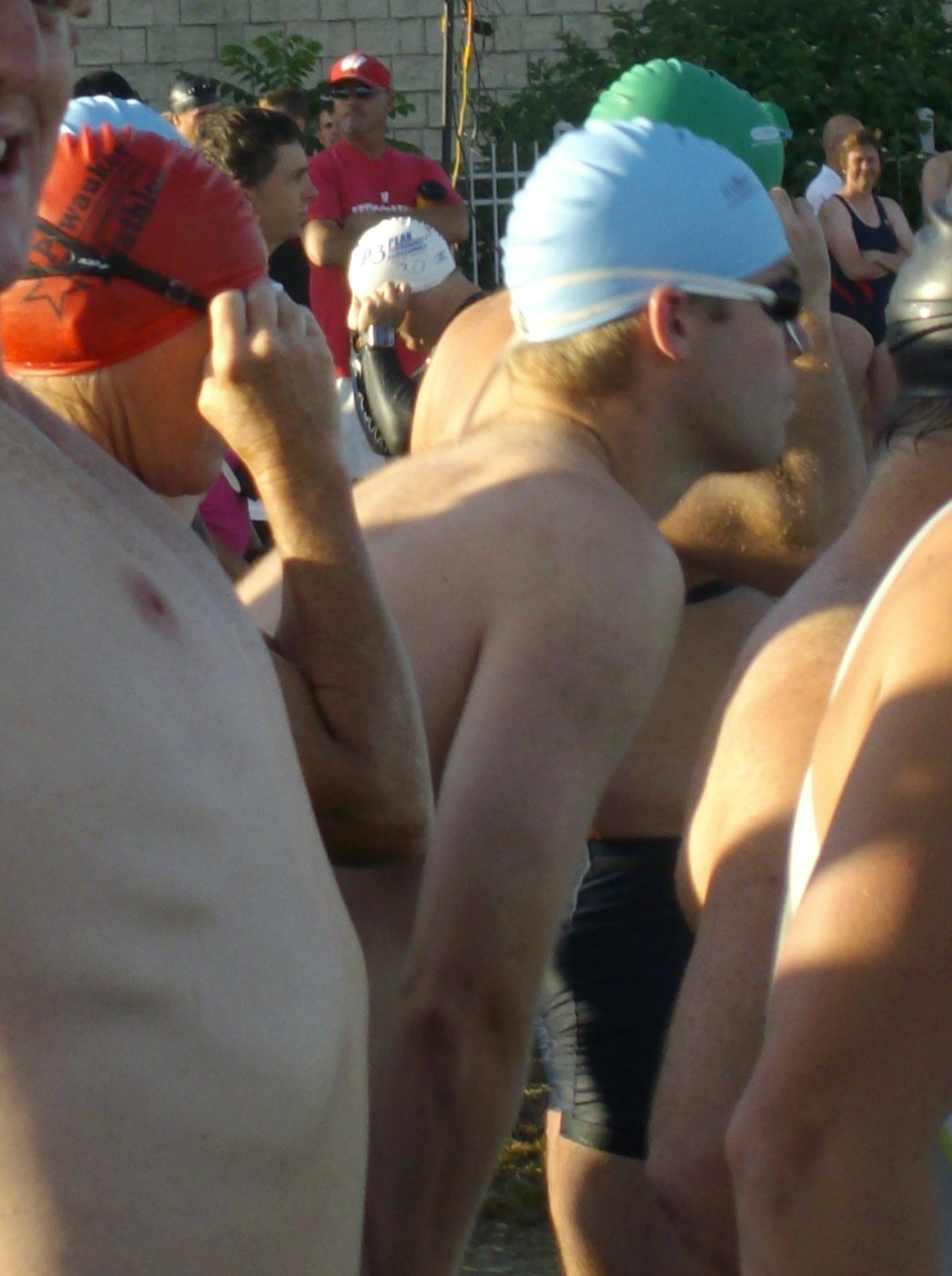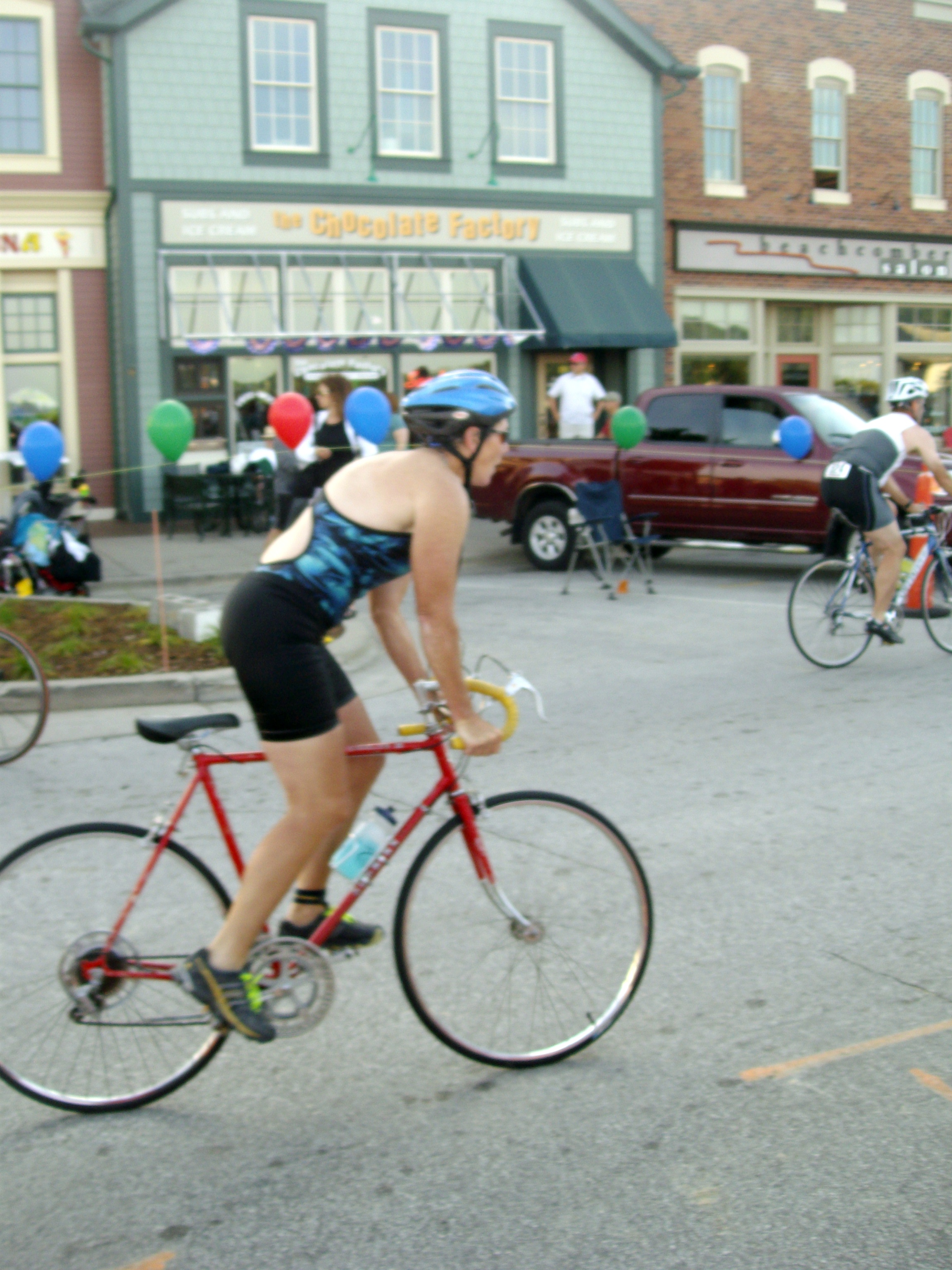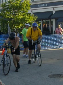 This year’s Tri-Allegan Triathlon featured an epic battle between young and old, man and woman, athletic prowess and wily experience and cunning. It may go down in history as one of the greatest athletic events of all time. That being said I must report that my team, Team Old Guys finished in a solid 4th place. My swimmer, Scott pared 30 seconds off last years swim time but died coming out of the water and couldn’t muster much more than a walk across the beach and up the hill to transition. But then again he’s a swimmer not a runner. Marty the runner is the closest to a rock star as there is on the team. He just plain flies and uses himself up on the course….he also spends a lot of time using himself up during warm-ups. I’m the old guy on the bike and even though I’m due for knee replacement in 2 weeks I was determined to hold up my end of the bargain. To boot I had made a small wager with the local chief of police (10 years my junior, 50 pounds lighter and 2 good knees). My bike time against his bike time, loser congratulates the winner publicly in the local newspaper. Maybe not so smart but if you talk big you gotta back it up, right? I trained over 550 miles getting ready and was determined to at least beat the chief. I found myself getting my game face on minutes before the start and who should pop out from behind my friend Mel (Mel is a big guy and easy to hide behind) but my little sister Mary. I was shocked to say the least and stunned to see that she was in her “skinny pants” with a timing chip on her ankle. She was in the race!!!!