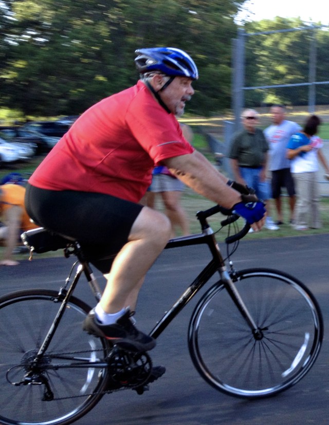Now you have to understand I put together a team 2 years ago to beat Mary and she edged us by 2 minutes. On that team I had a University of Wisconsin Stevens Point Athletic Hall of Fame swimmer and a svelte, fit twenty something runner and we couldn’t do it. But Tuesday night a bunch of old guys gave it all they had and we beat Mary by a decisive 4 minute margin!