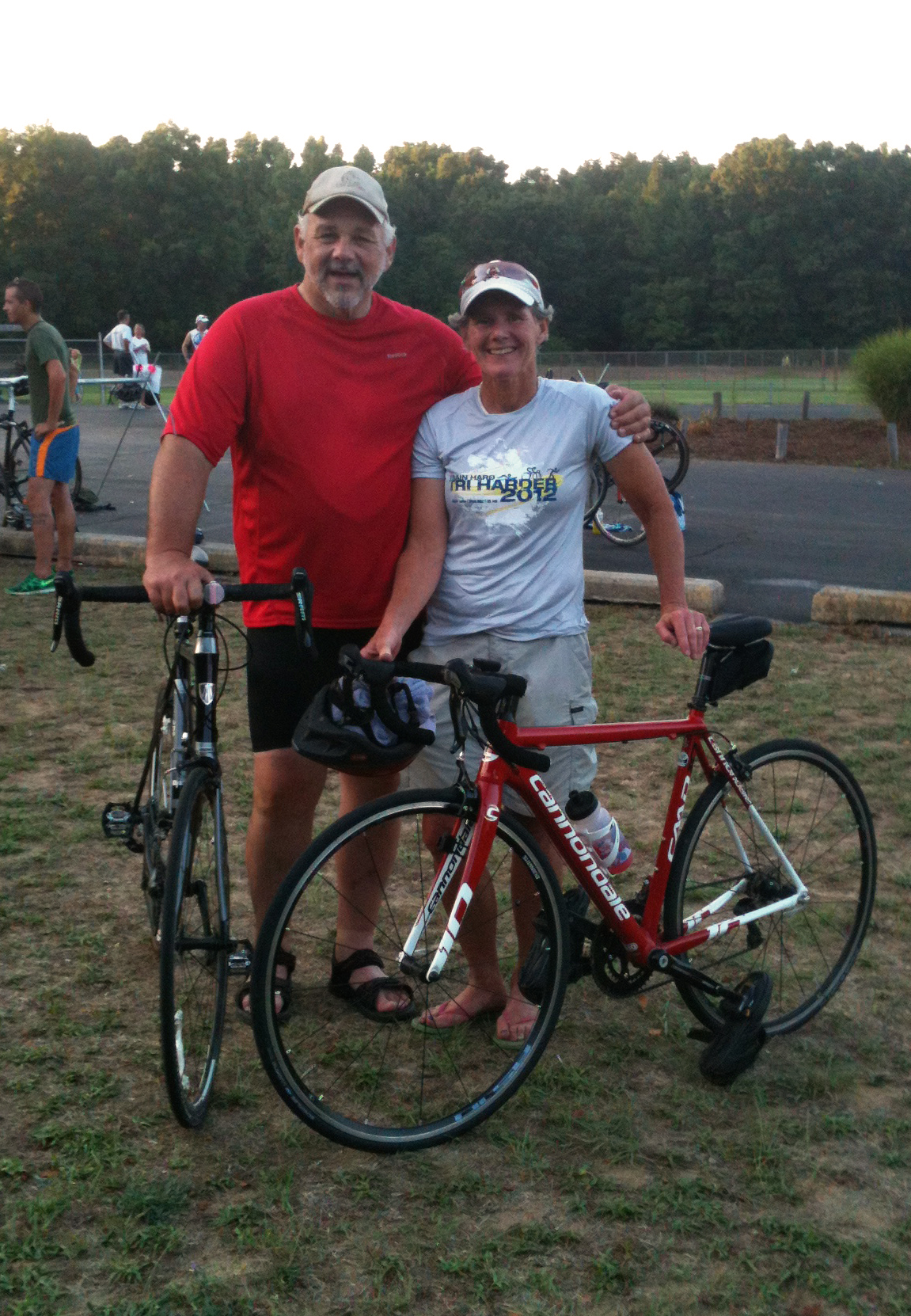Scott swam like a torpedo, I biked as hard as I could and when something let go in that right knee at mile 11 I kept going, Marty ran like the wind. All of us with one goal. BEAT MARY!!!